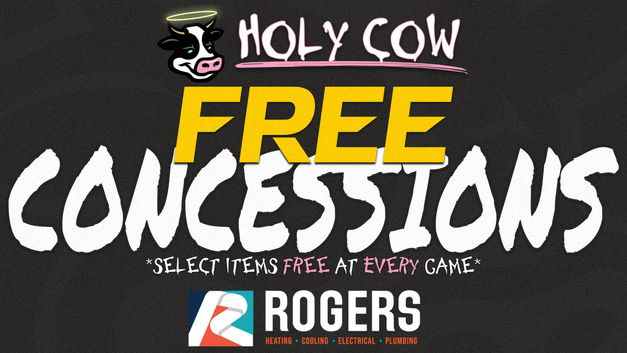 Opening Weekend rolls on! Enjoy Free Concessions again as we close out our first homestand of the season. Fans also receive a Rally Towel presented by The Dairy Alliance. Plus, it's Selection Sunday — YOU help shape the game experience! Submit your ideas before first pitch and vote on what gets implemented live during the game. Past options have included jersey color choices, walkup music for the visiting team, specialty concession items, and on-field entertainment games. Your voice, your ballpark.
